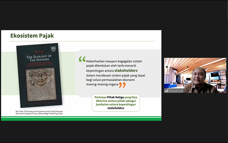 Staf Ahli Bidang Riset dan Penelitian Asosiasi Tax Center Perguruan Tinggi Seluruh Indonesia (Atpetsi) B. Bawono Kristiaji mengatakan sistem pajak yang ideal memerlukan peran yang kuat dari pihak ketiga sebagai jembatan antara otoritas dan masyarakat sebagai pembayar pajak.