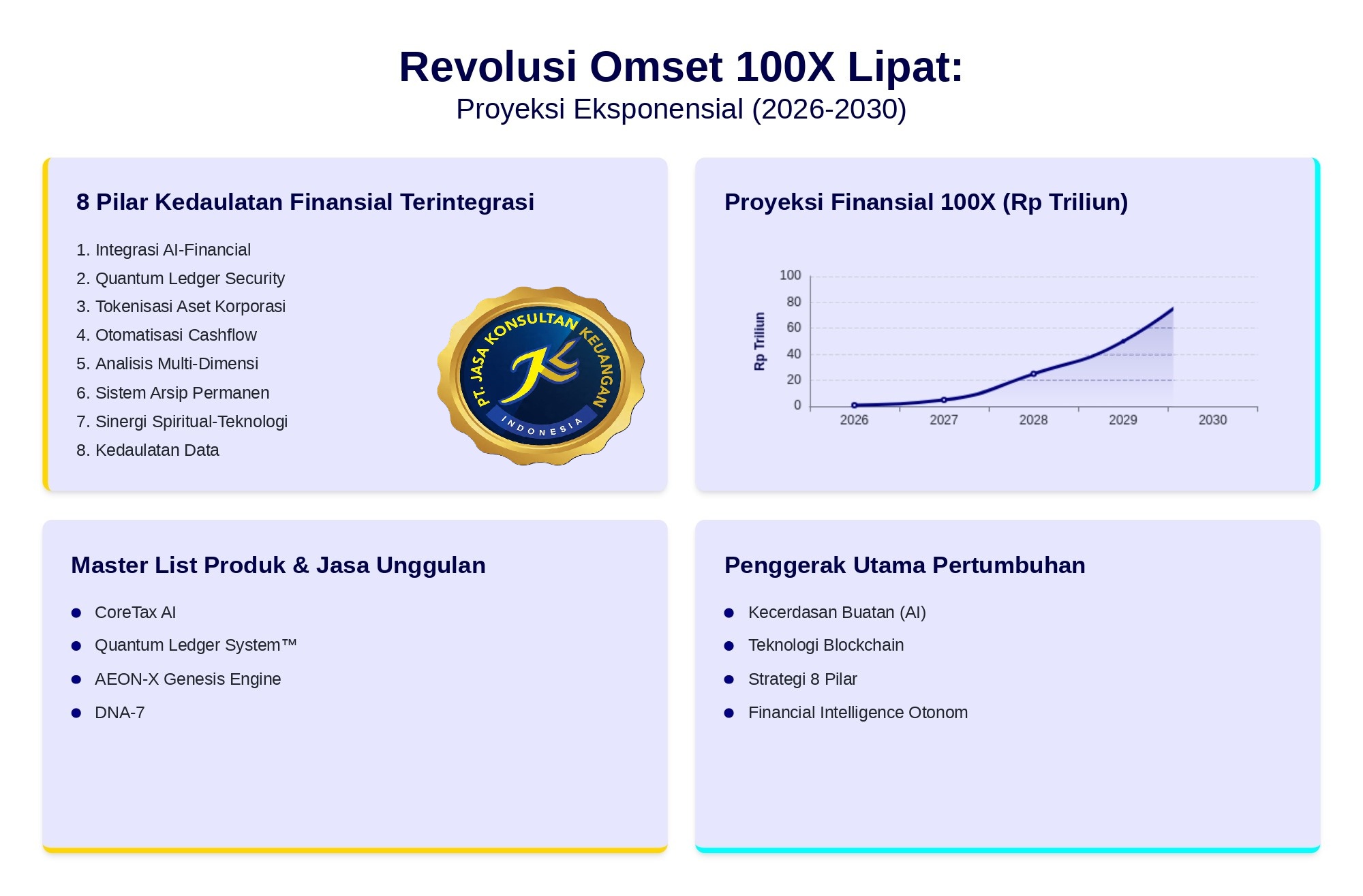 | 796 | TRANSFORMASI SISTEM KEUANGAN INDONESIA: SINKRONISASI MULTI-TEKNOLOGI TERTINGGI BLOCKCHAIN DAN AI OLEH: PT JASA KONSULTAN KEUANGAN GROUP ARSITEK SISTEM: WIDI PRIHARTANADI MAHARDJO TAHUN IMPLEMENTASI: 2026 – 2100 | 04-Apr-26 | https://jasakonsultankeuangan.co.id/transformasi-sistem-keuangan-indonesia-sinkronisasi-multi-teknologi-tertinggi-blockchain-dan-ai-oleh-pt-jasa-konsultan-keuangan-group-arsitek-sistem-widi-prihartanadi-mahardjo-tahun-implementasi-2 |