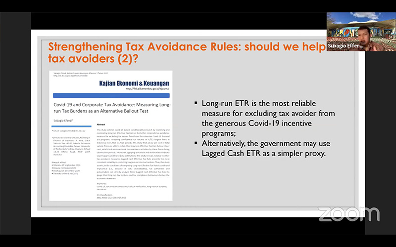 Akademisi dan kandidat doktor dari University of Technology Sydney Business School Subagio Effendi mengatakan masa pandemi bisa dimanfaatkan untuk mengatasi masalah penghindaran pajak yang selama ini tidak dapat diselesaikan pemerintah.