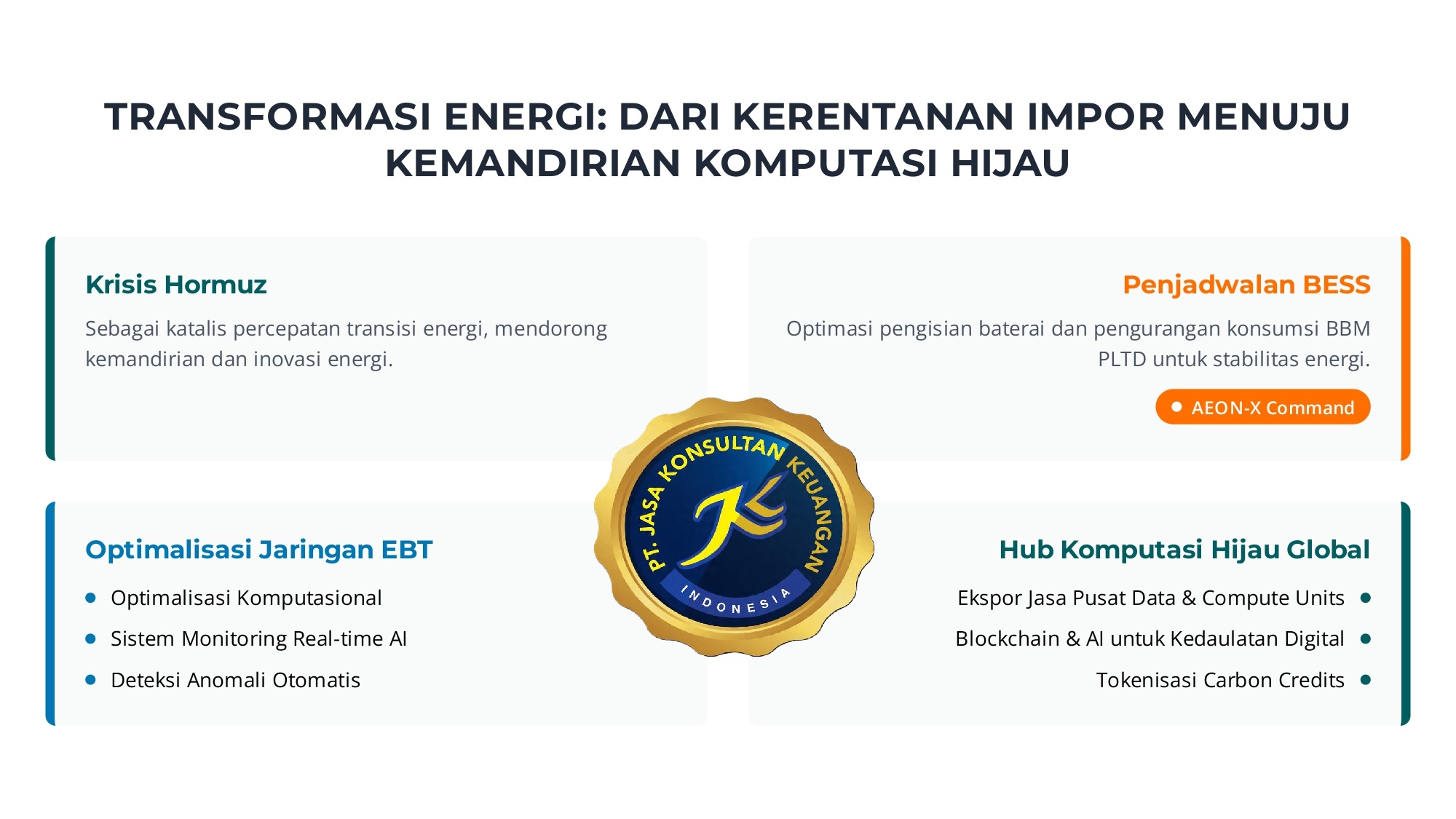 Artikel ini—hasil sinkronisasi mendalam antara Peta Jalan Ketahanan Energi 2026–2045 dan Arsitektur Finansial Otonom PT Jasa Konsultan Keuangan—mengungkap bahwa kunci ketahanan energi tidak lagi terletak semata pada pengeboran sumur baru, melainkan pada revolusi tata kelola fiskal dan distribusi subsidi berbasis Quantum Ledger.