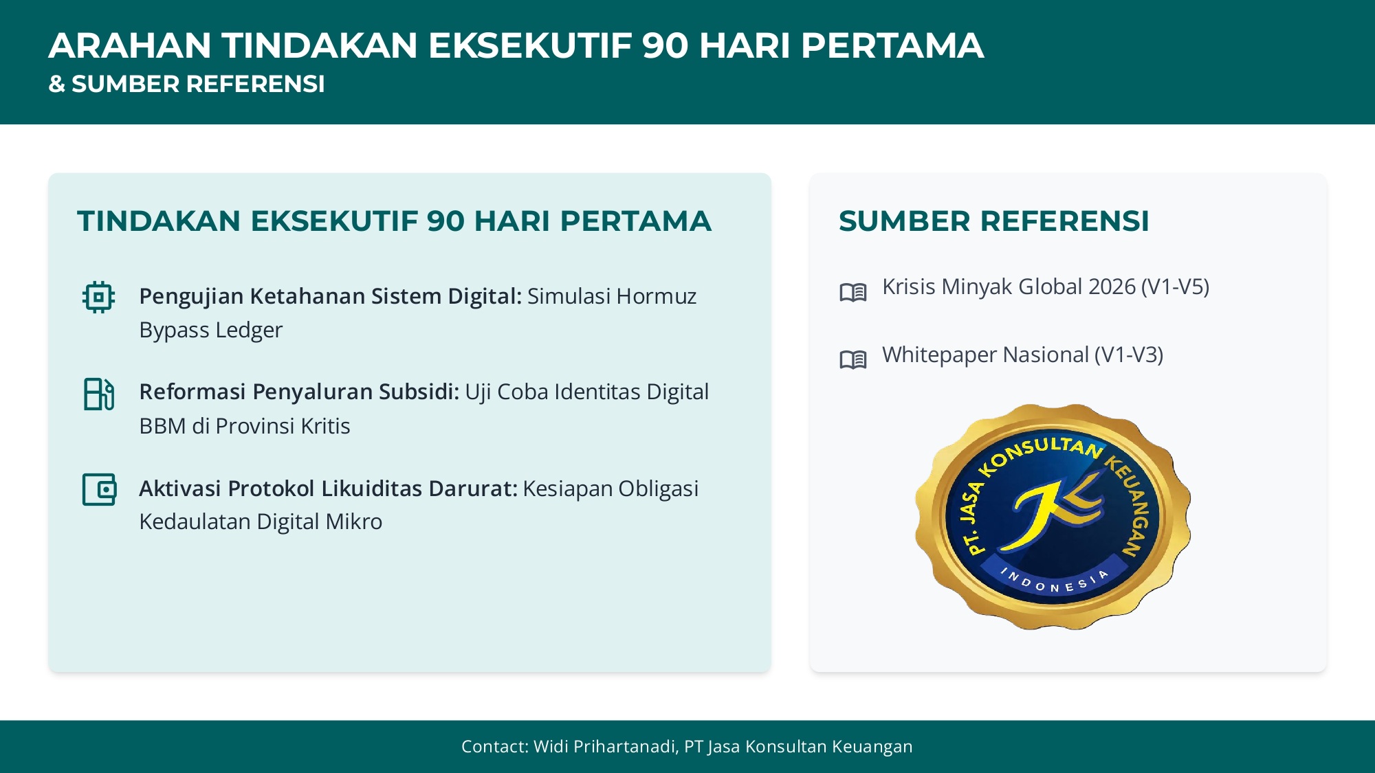 Melalui sinkronisasi Peta Jalan Energi dengan Arsitektur Widi Prihartanadi, kita tidak lagi berbicara tentang bertahan dari krisis, melainkan tentang lompatan kuantum menuju kedaulatan energi berbasis data.