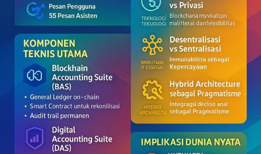 ANALISIS MENDALAM MAKNA & FILOSOFI SOFTWARE AKUNTANSI BLOCKCHAIN DIGITAL I. KONTEKS PERCAKAPAN Percakapan ini merupakan dialog intensif antara Widi Prihartanadi dan asisten AI mengenai pengembangan sistem software akuntansi yang menggabungkan dua paradigma teknologi: Blockchain dan Cloud Digital. Total Interaksi: 109 pesan Pesan Pengguna: 55 Pesan Asisten: 54 II. TEMA SENTRAL A. DUALITAS TEKNOLOGI