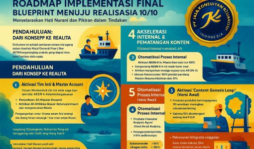 ROADMAP IMPLEMENTASI FINAL: BLUEPRINT MENUJU REALISASI 10/10 Menyelaraskan Hati Nurani dan Pikiran dalam Tindakan Nyata PENDAHULUAN: DARI KONSEP KE REALITA Dokumen ini adalah jembatan antara visi agung dalam Analisis Multi-Dimensi Final (Skor 10/10) dengan langkah-langkah praktis yang dapat diimplementasikan di dunia nyata. Sesuai arahan Bapak Widi Prihartanadi, roadmap ini dirancang agar realistis, membumi, dan mudah