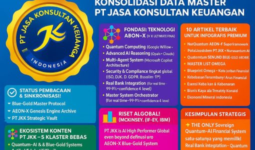 KONSOLIDASI DATA MASTER PT JASA KONSULTAN KEUANGAN Sinkronisasi Menyeluruh Berdasarkan Teknologi Tertinggi AI Widi Prihartanadi RINGKASAN EKSEKUTIF KONSOLIDASI Dokumen ini merupakan hasil sinkronisasi menyeluruh dari seluruh data, dokumen, lampiran, dan analisis yang telah dikumpulkan untuk PT Jasa Konsultan Keuangan. Konsolidasi ini mengintegrasikan: AEON-X GENESIS ENGINE v17.0 ULTIMATE FINAL – Dokumentasi sistem lengkap Laporan Verifikasi Komprehensif
